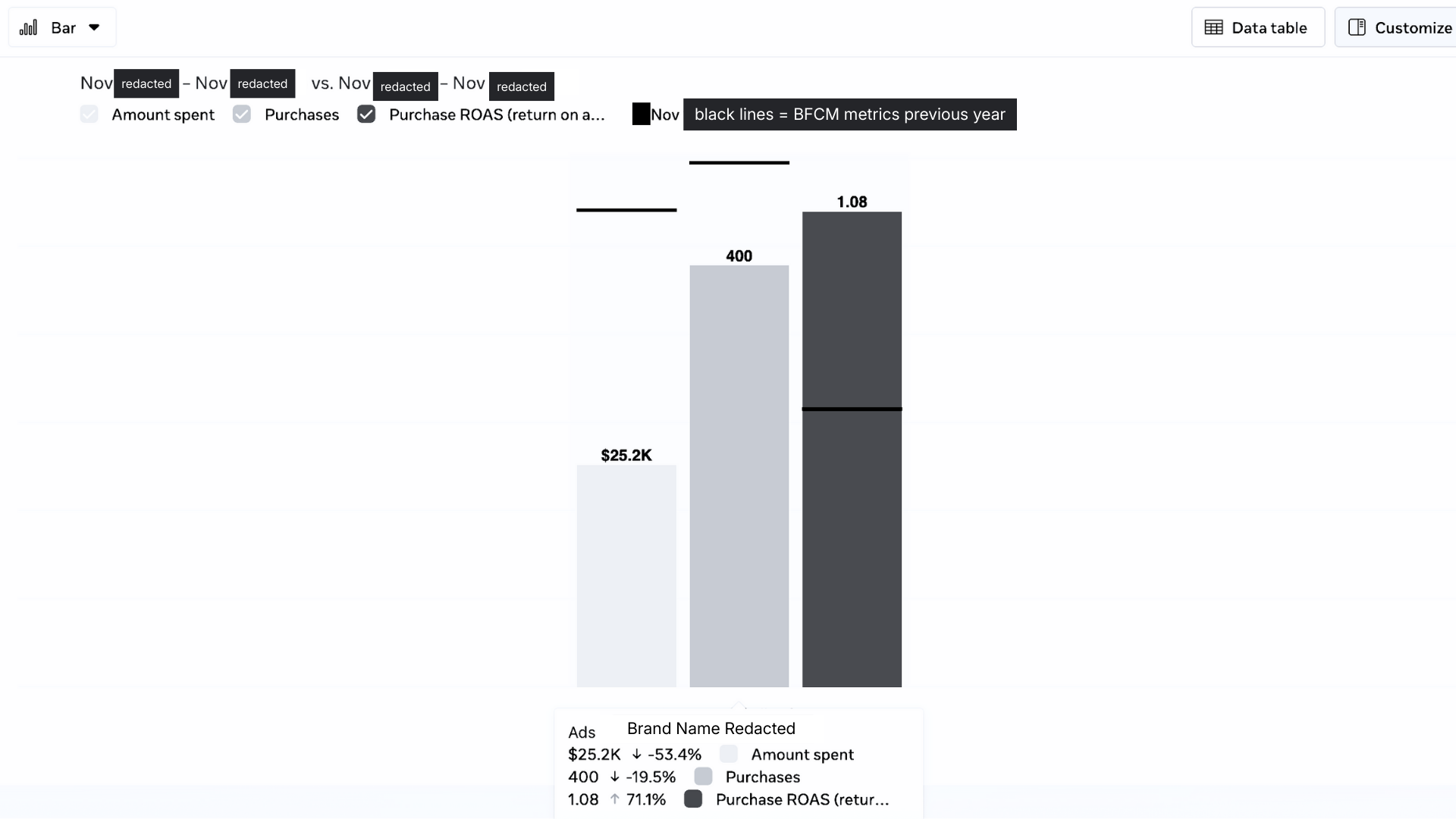 As BFCM was approaching, the brand wanted to ensure a positive ROAS on Meta for the promo period and prioritize efficiency over volume alone.